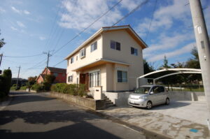 南北に縦長の土地に合わせて、駐車スペース・植栽や土いじりの出来る庭・子供たちの遊びや勉強スペース・家族の集える(来客にも対応できる)開放的なリビング・奥様の好きな料理作りを楽しめるダイニングキッチン・将来性を考えた子供部屋・ご夫婦の趣味である山登りやスキーなどの専門収納スペースを。内、外観は、白を基調とし、無垢材を使ったスッキリと温かみのあるイメージに。この内容を落とし込み、味付けをしながら建て主様と一緒に考えた住まいです。